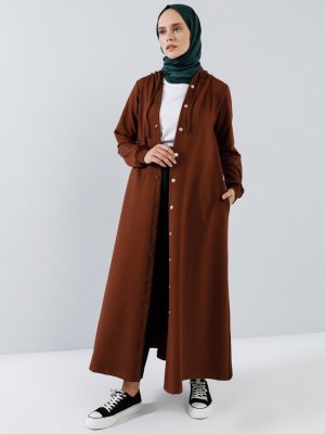 Benin Toprak Kapüşon Detaylı Çıtçıtlı Spor Pardesü