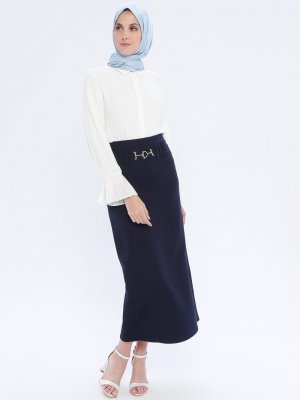 APSEN Lacivert Aksesuar Detaylı Kalem Etek