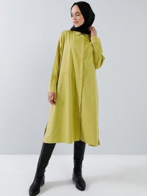 Benin Safran Doğal Kumaşlı Gizli Düğmeli Tunik