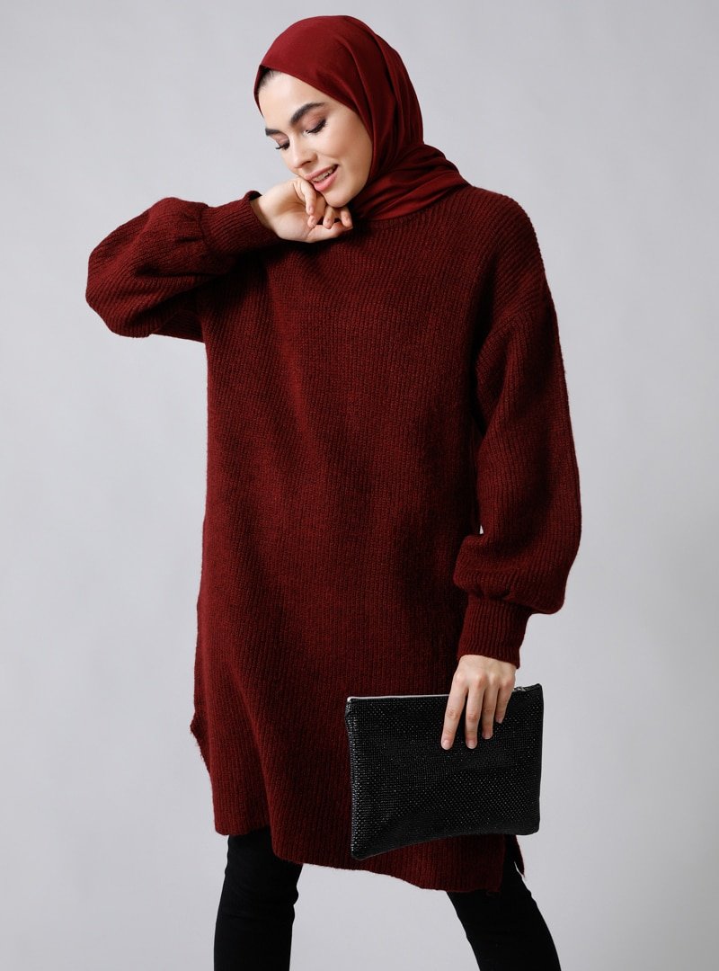 Refka Bordo Balıkçı Yaka Triko Tunik