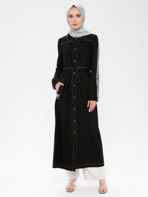 Nihan Siyah Düğmeli Pardesü