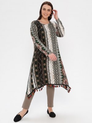 Genç Style Yeşil Püskül Detaylı Tunik