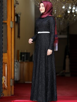 Rabeysa Siyah Defne Abiye Elbise