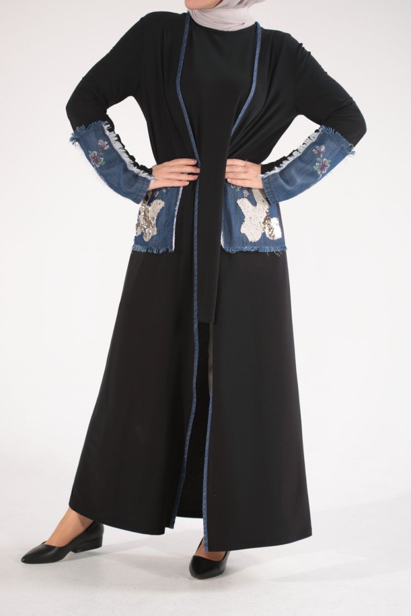 Allday Siyah Önü Açık Uzun Kap
