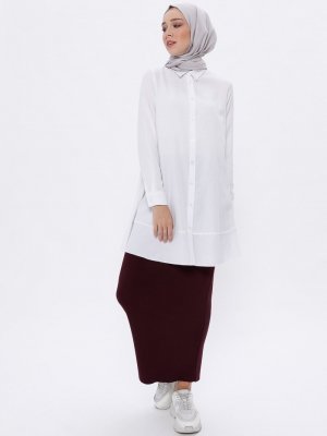 Mocha Triko Mürdüm Dar Kesim Triko Etek