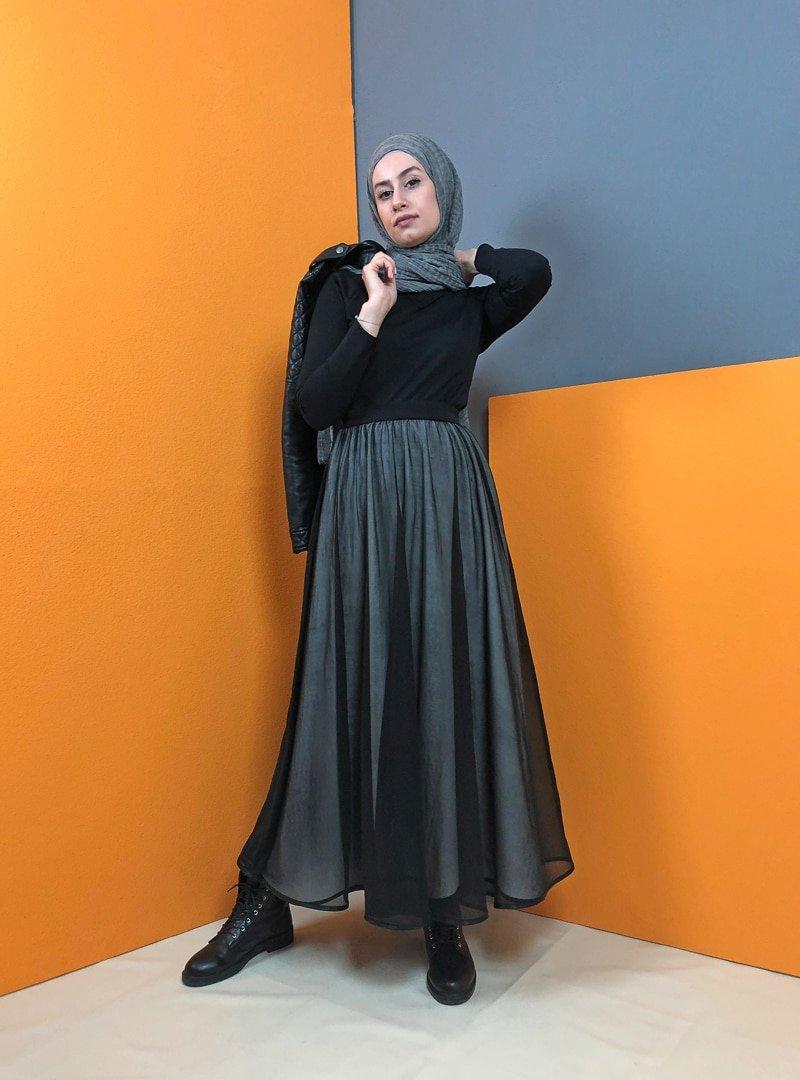 MODEL ÖLÇÜSÜ: Beden: Standart, Boy: 97 cm, Bel: 100 cm, Basen: 142 cm