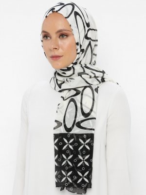 Burden İpek Krem Haiti Empirme Dijital Elips Desen Şal