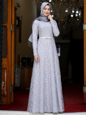 Rabeysa Gri Defne Abiye Elbise