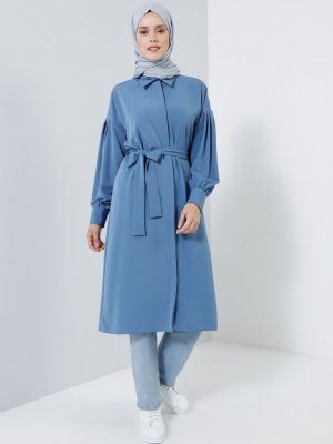 Benin Derin Mavi Gizli Düğmeli Salaş Tunik