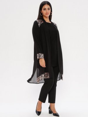 he&de Siyah Tunik&Ceket&Pantolon Üçlü Takım