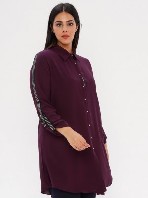he&de Mürdüm Simli Kontrast Şeritli Gömlek