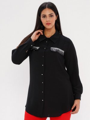 he&de Siyah Payet Detaylı Gömlek