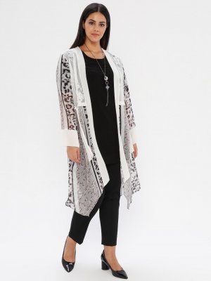 he&de Beyaz Kontrast Tunik&Ceket İkili Takım