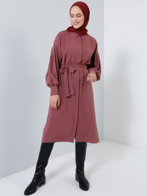 Benin Açık Mürdüm Gizli Düğmeli Salaş Tunik