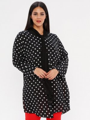 he&de Siyah Fular Detaylı Puantiyeli Bluz