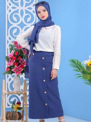 Tofisa Saks Mavisi Düğme Detaylı Etek