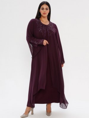 he&de Mürdüm Drop Baskılı Abiye Elbise