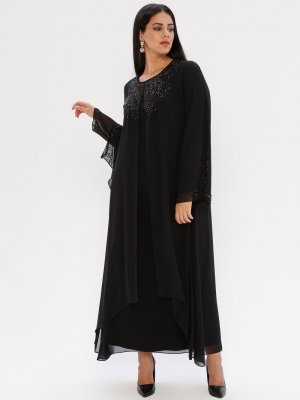 he&de Siyah Drop Baskılı Abiye Elbise