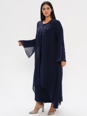 he&de Lacivert Drop Baskılı Abiye Elbise