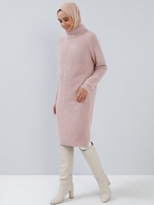 Benin Pudra Boğazlı Yaka Triko Tunik