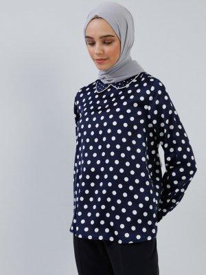 Benin Lacivert Bebe Yakalı Puantiyeli Bluz