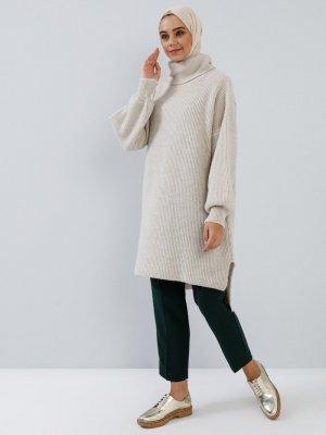 Benin Fil Dişi Boğazlı Yaka Triko Tunik