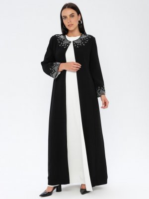Nihan Siyah Taşlı Ferace & Elbise İkili Takım
