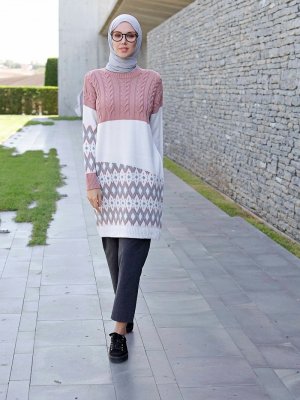 İnşirah Pudra Gri Triko Tunik