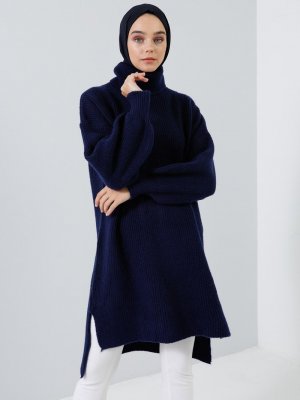 Benin Lacivert Balıkçı Yaka Triko Tunik