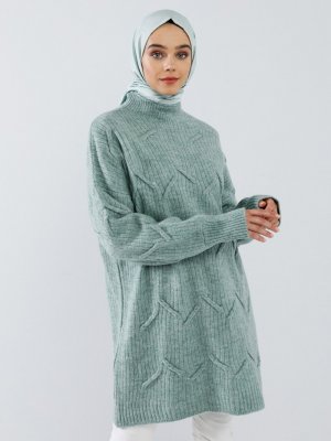 Benin Mint Melanj Balıkçı Yaka Dokulu Triko Tunik
