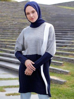 İnşirah Gri Lacivert Triko Kazak