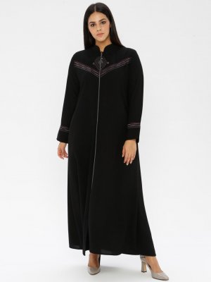 GELİNCE Siyah Taş Detaylı Ferace