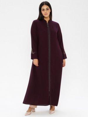 GELİNCE Mürdüm Boydan Taş Detaylı Ferace