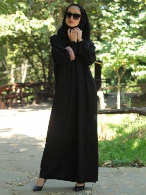Melek Aydın Siyah Kolu Aplikeli Ferace