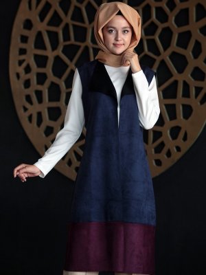 Nurkombin Lacivert Süet Yelek