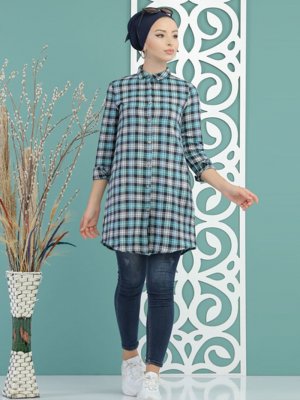 Tofisa Mint Yeşili Gömlek Yaka Tunik