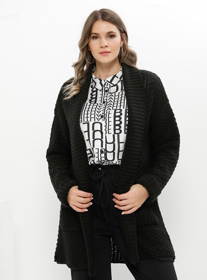 Alia Siyah Cep Detaylı Triko Hırka
