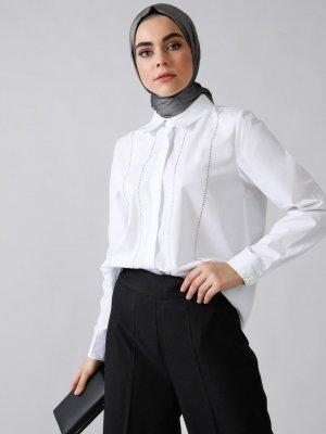 Refka Beyaz Doğal Kumaşlı Taş Baskılı Gömlek