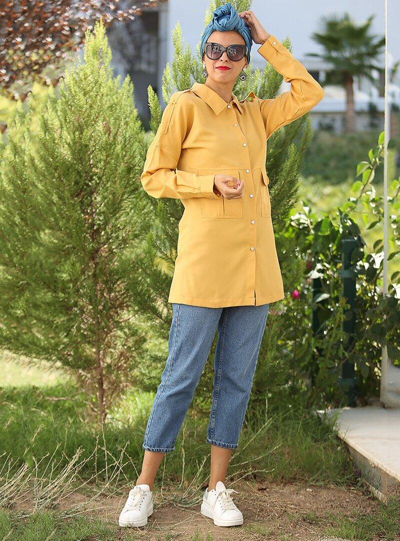 Por La Cara Hardal Cepli Çıt Çıtlı Gömlek