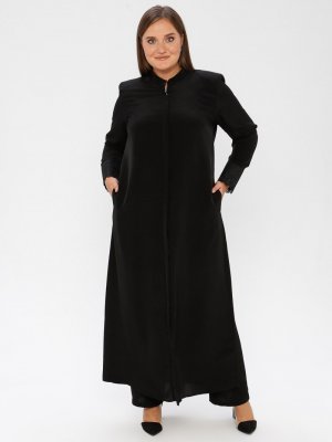 ModaNaz Parlak Siyah Gizli Fermuar Detaylı Ferace
