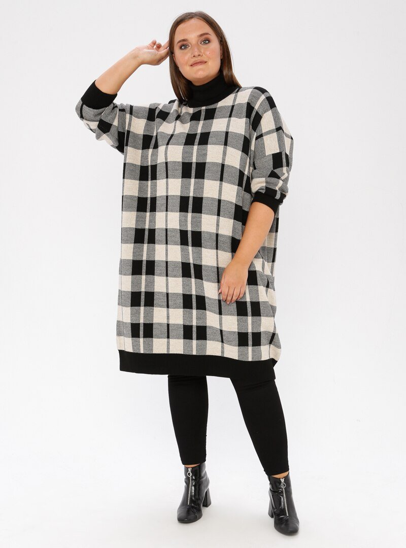 NOVİNZA Siyah Bej Kare Desenli Kazak