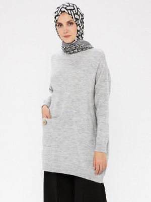 TURTAŞ Açık Gri Triko Tunik