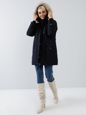 Benin Lacivert Kürk Detaylı Mont