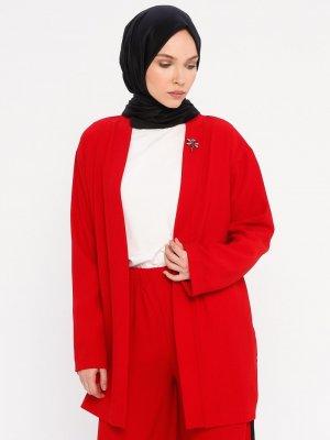 Meys Kırmızı Yakası Taş Detaylı Ceket