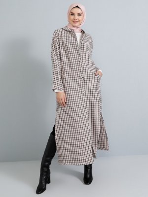 Tavin Koyu Pembe Kapüşonlu Ekoseli Kap