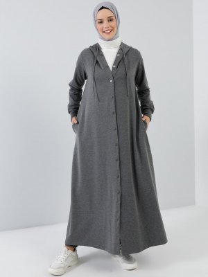 Benin Antrasit Kapüşon Detaylı Çıtçıtlı Spor Pardesü
