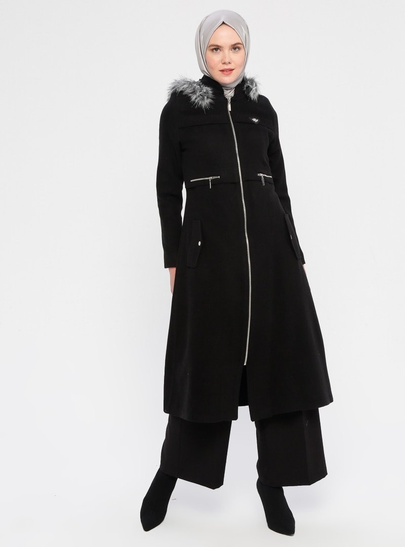 BÜRÜN Siyah Kaşe Kaban