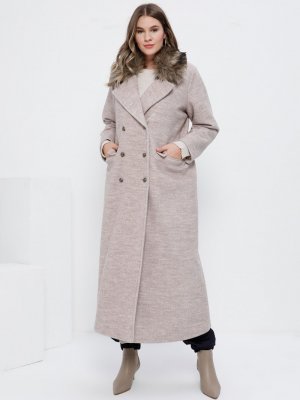 Alia Bej Yakası Kürkü Yünlü Kaban