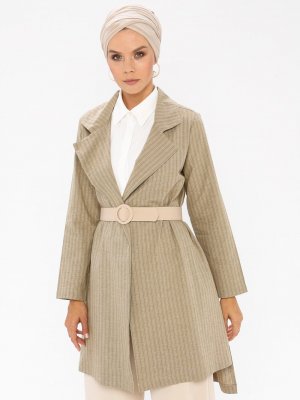 Meryem Acar Açık Haki Şal Yaka Ceket
