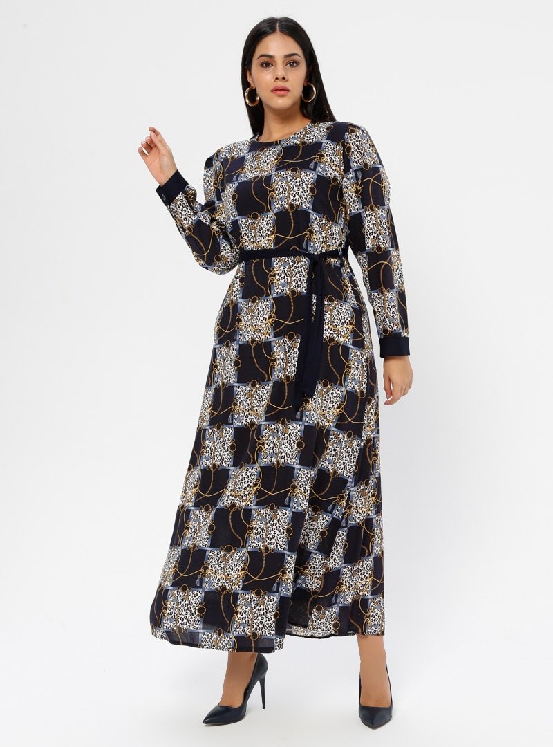 GELİNCE Lacivert Desenli Elbise